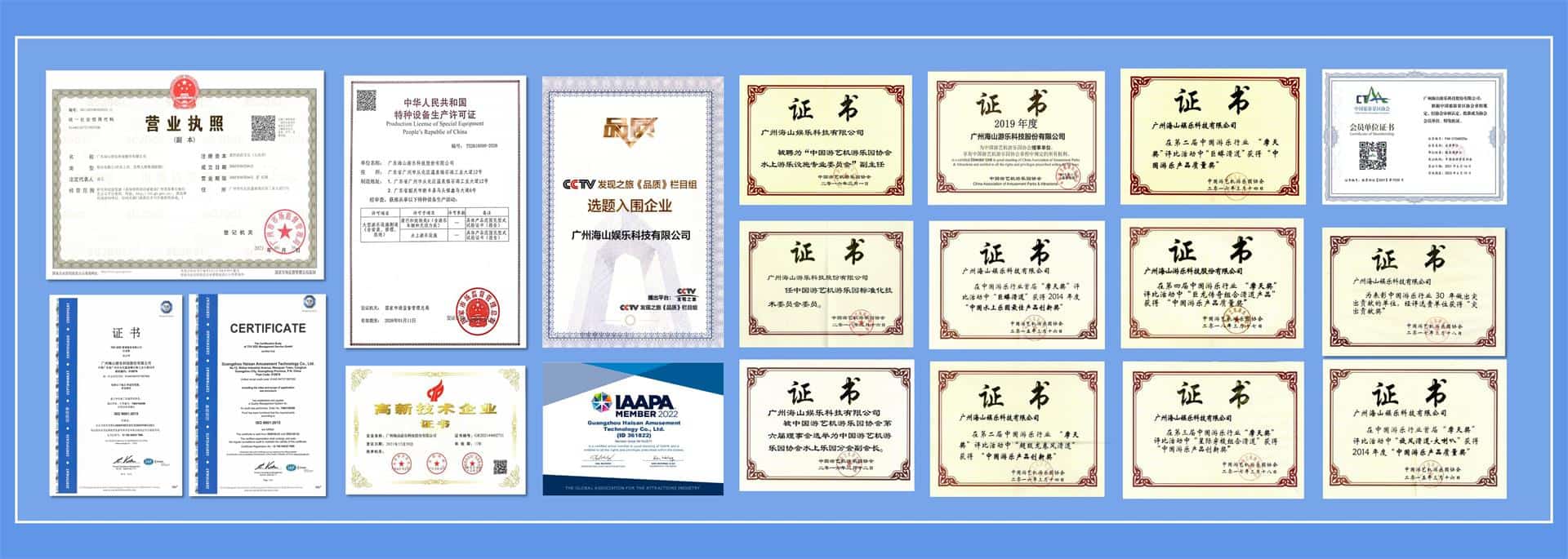 海山游乐还是全国索道与游乐设施标准、水上游乐设施通用技术条件标准起草单位、中国游艺机游乐园协会水上游乐设施专业委员会副主任单位、是国家高新技术企业,拥有国家甲级旅游规划设计资质,是被 CCTV《品质》栏目专题展播报道的中国制造品牌企业。